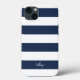 Chic personalised case features classic wide stripes in timeless navy blue and white, with your name, monogram or favourite phrase in modern script lettering. Preppy design is perfect for adding both style and protection to your phone in a chic navy and white colour palette.