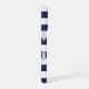 A clean and modern personalised phone case design featuring wide horizontal stripes in classic nautical navy blue and white. Personalise with a name, monogram, or saying near the bottom in crisp modern lettering.