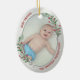 The ornament in oval shape has a classic silver frame adorned with Christmas plants and ribbon to display your own special memory of your new baby. The bright and shiny silver border encircles your photos. The holly, greenery and silk ribbon complete the whole design with a joyful atmosphere of the holiday season. On the back side, the quotes on the edge of the frame show your deep love and pride in being new grandma. Easily place your memorable photos in place of the template photo as well as the baby name and year to make your own ones and send them to your friends and family. What a fantastic way to celebrate your first Christmas as grandma!