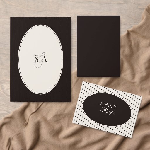 Set the tone for a timeless, refined celebration with this Black & Ivory Striped Old Money Wedding Invitation Template, designed for couples who appreciate classic elegance, heritage-inspired details, and understated luxury. With its tailored vertical pinstripe background, soft ivory centerpiece, and elegant oval monogram frame, this invitation evokes the charm of European estate stationery, private club correspondence, and heirloom wedding paper goods.