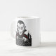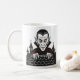 Who's there? It's Dracula! This iconic Classic Peeking Vampire Mug features a vintage horror style illustration of a bloodsucker peering over castle battlements with intense red eyes. A perfect, high-contrast, black and white spooky gift for Halloween or year-round gothic decor!