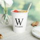 features personalised monogram and name in black classic serif font style on white background.