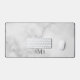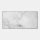 Classic design features personalised 3 letter initial monogram in grey classic serif font style on white marble background.