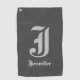 This vintage golf towel design features a customisable name and initial letter. A golf towel like this might be a fun personalised gift for somebody who likes to play golf. [~Z0000440]