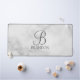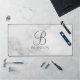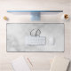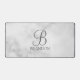 features personalised monogram in grey classic script font style and name in grey classic serif font style on white marble background.