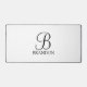features personalised monogram in black classic script font style and name in black classic serif font style on white background.