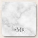 Classic design features personalized 3 letter initial monogram in grey classic serif font style on white marble background.