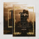 Modern stylish dark wedding invitation black with gold dust on with a gold ink pour effect (the gold is a digital effect, not real foil) and modern calligraphy. Classy and elegant, simple and modern invitation.