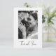 Express heartfelt gratitude with this elegant flat thank you card. The front showcases a full-photo design with a graceful “Thank You” script overlay, creating a warm and personal presentation. On the back, there’s room for a secondary photo and a customised message, allowing you to share your appreciation in a meaningful way. Perfect for weddings, showers, anniversaries, or any milestone event, these cards blend modern simplicity with a personal touch, making them a keepsake your loved ones will cherish.