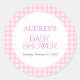 Classic Pink Gingham Girl Baby Shower Round Sticker