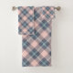 Classic Pink Grey Blue Plaid Gingham Pattern Bath Towel Set