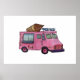 Classic pink ice cream truck with cone on top poster
