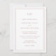 Classic style pink dusty rose wedding invitation featuring a simple and minimal design with your monogram at the top and your event details surrounded by a double border. The fonts alternate between and elegant script, a traditional serif and minimalist sans serif fonts. The back has your guest details along with an optional QR Code (if you prefer, you may remove the QR Code in the design editing tool). This invitation is great for a formal wedding.
