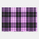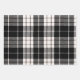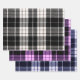 This wrapping paper set features a classic plaid pattern set in black and white, purple and black and navy blue and black.