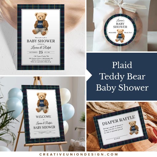 Celebrate in timeless style with our Classic Plaid Teddy Bear baby shower collection — a charming blend of preppy elegance and cosy nostalgia. Featuring a watercolor teddy bear dressed in classic casual attire, set against a rich plaid background, this design captures the warmth and sophistication of a heritage-inspired celebration. Perfect for a “bearly wait” baby shower or any refined event theme, this collection adds a touch of understated luxury and charm to your special day. See the entire collection for more matching items!