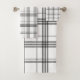 A favourite classic black striped plaid with white. Great for home baths, shower gifts, cottages and more. We have a great selection of all styles, colours, unique bath towels (and sets including shower curtains and bath mats) at our store. Thanks for stopping by.