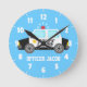I bought the clock as a 'first time' grandmother. When I opened the package, I cried. the workmanship, material, color and the opportunity to personalize it was just perfect. I know that my grandson will be able to quickly learn to identify numbers, count and tell time! What a keepsake! I was totally happy with the printing, color choice and overall presentation of the clock!
