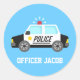 A design with a classic black and white police car that has a sounding siren. For boys who aspire to be policeman love police patrol cars. Personalise with child's name. Background colour can be changed in customisation mode.