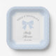 Classic Polka Dots Dusty Blue Bow Boy Baby Shower Paper Plate