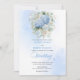 Set the tone for a stylish and unforgettable celebration with this watercolor blue and gold wedding invitation, designed around today’s most trendy wedding color palette. Featuring soft pastel, powder, light, and pale blue hydrangeas, paired with fresh eucalyptus greenery and elegant gold floral accents, this design captures modern romance with timeless appeal.