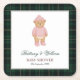 Classic Preppy Bear Green Tartan Plaid Baby Shower Square Paper Coaster