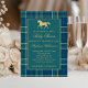 Classic Preppy Plaid Green Equestrian Baby Shower Invitation