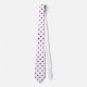 Polka dots! One of the classic apparel patterns that looks great on ties. This polka dot necktie features small purple dots on white.