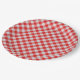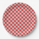 Red and white gingham checks on paper plates for your picnic, BBQ, or pool party.