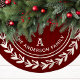 This classic tree skirt design features a rich red background adorned with a white laurel wreath, encircling a customisable family name and initial. The elegant, timeless style is perfect for adding a personalised touch to your holiday decor. The vibrant red and white contrast creates a warm and festive look, making this tree skirt a beautiful and unique centerpiece for your Christmas tree.