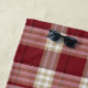 A timeless beach towel design featuring classy red and beige plaid, combining sophistication and elegance with a warm, refined aesthetic.
