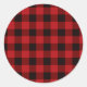 Classic red black plaid pattern classic round sticker
