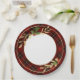 Classic Red Christmas Tartan, Holly & Gold Leaves Paper Plate