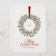 A classic Christmas non photo card with a festive holiday wreath on the front, accented with red berries and ribbon. The year can be kept or removed, and the text allows for your own name or greeting. On the back, you can keep the elegant wishes provided or replace them with your own holiday message. A timeless Merry Christmas card in a traditional style.