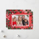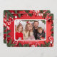 Send holiday cheer with this timeless Christmas card featuring your family photo framed by a festive red background and candy cane border. The design is accented with evergreen branches, ornaments, and holiday decorations in traditional red, green, and white for a classic seasonal look. Personalise with your family name and year to create a memorable keepsake. With its bold and elegant style, this card is the perfect way to spread warmth and joy to family and friends during the holidays.