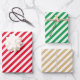 This wrapping paper features classic diagonal white stripe pattern on red, green, and gold background. Part of the Christmas collection.