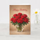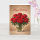 A timeless and elegant birthday card design featuring a lush bouquet of deep red roses arranged in a clear glass vase. Set against a warm, softly textured background, the rich crimson petals and fresh green leaves create a striking, romantic contrast. The refined “Happy Birthday” script above the bouquet adds a graceful finishing touch, making this design perfect for traditional tastes and heartfelt celebrations.