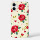 This iPhone case showcases a charming design of vibrant red roses with delicate green leaves and scattered hearts on a soft cream background. Perfect for adding elegance and romance to your device, it offers durable protection against daily wear and tear. A great choice for flower enthusiasts or as a heartfelt gift for a loved one.