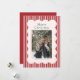 Share festive joy with this classic red stripe holiday card featuring a scalloped photo frame and timeless Christmas design — perfect for family portraits and cheerful greetings.