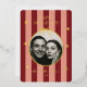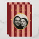 Send warm holiday wishes in timeless style with this elegant red striped photo card Featuring bold retro stripes, golden star details, and a charming ribbon-framed photo space, it’s the perfect way to share your love and joy with friends and family. Whether celebrating your first holiday together or sending annual greetings, this card adds a cosy, vintage charm to the season.
