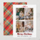 Celebrate the season with this festive card showcasing a vibrant red tartan plaid back and hand-lettered "Merry Christmas". Easily personalise it with four of your favourite family photos and your custom name.