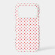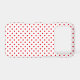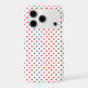 Red polka dots on a white background.