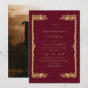 Modern stylish dark wedding invitation purple with gold dust on with a gold ink pour effect (the gold is a digital effect, not real foil!) and modern calligraphy. Classy and elegant, simple and modern invitation.