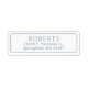 Classic dusty blue on white return address labels featuring a clean sans serif font for a traditional feel.