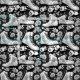 Classic roller skates, roses, black and white de fabric
