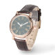 Make a timeless statement with this stylish wrist watch with chic vintage vibes, featuring elegant typography and roman numerals against a classic background of slate green. Simply personalize it with name and initial and grab the moment in style.