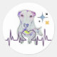 classic round, dog art with heartbeat, sticker
