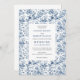 Make a lasting first impression with this French toile de Jouy wedding invitation, beautifully designed to showcase the best printing quality available on Zazzle. Featuring intricate floral patterns in rich navy, royal, dusty, and deep blue tones, this invitation blends timeless European elegance with refined modern presentation.