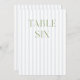 This elegant table number features a soft blue striped background with refined sage green serif typography and subtle script accents. Designed for garden weddings, refined receptions, and timeless outdoor celebrations.