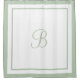 Add classic elegance to your bathroom with this stylish monogrammed shower curtain. This sophisticated white shower curtain is framed with a contemporary hotel chic layered border design. Personalise the script monogram letter with your first or last name initial. Light sage green and white colour scheme. Please shop our store for additional colour options.