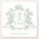 Classic Sage Green Floral Crest Monograms Wedding Square Paper Coaster